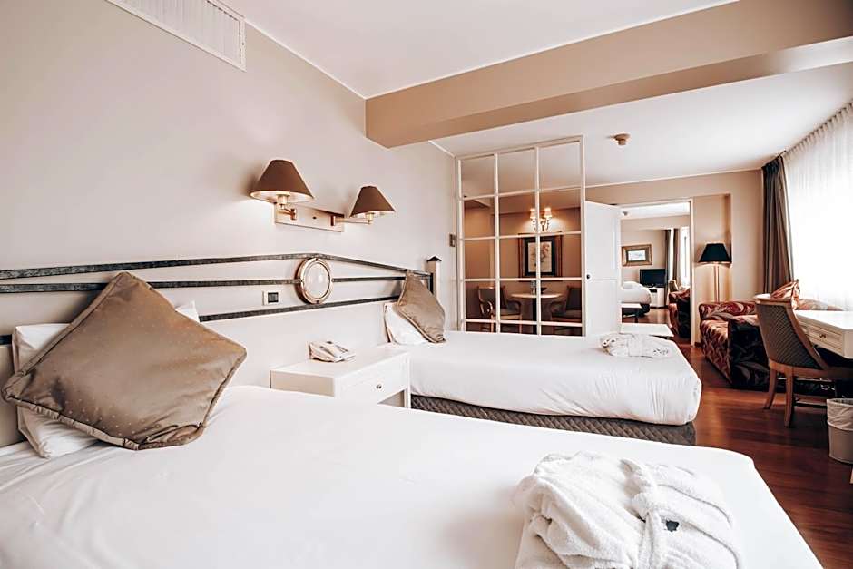 junior Suite Twin Beds is 431 square feet and includes 2 single beds 80-130 width plus tea and coffee making facilities and bathrobes.